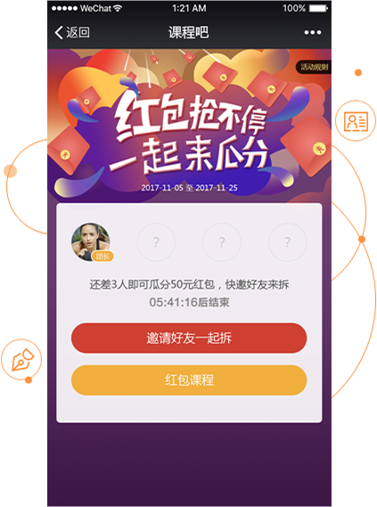 学员可以分享好友一起拆红包