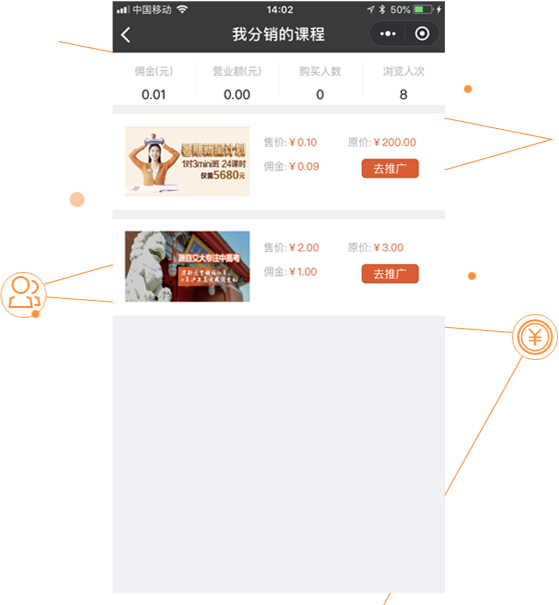 分销员通过分享课程给微信好友、微信群、朋友圈进行推广